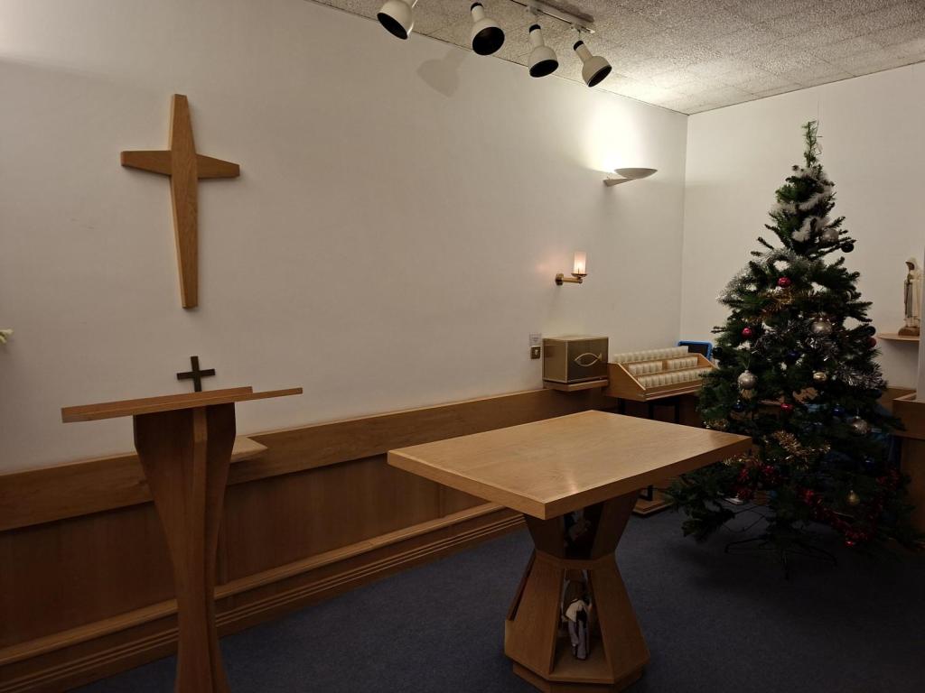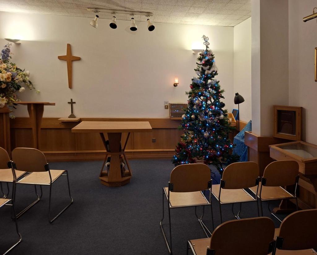 South of Lewisham town centre but very close to the old parish church. The hospital was built throughout the 20th century and the chapel is in one of the older buildings but is a very plain and simple space.