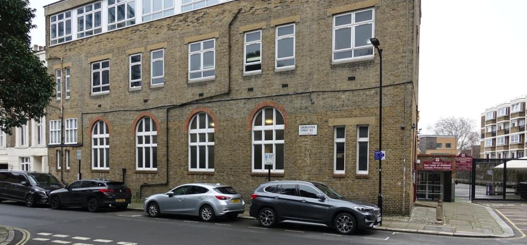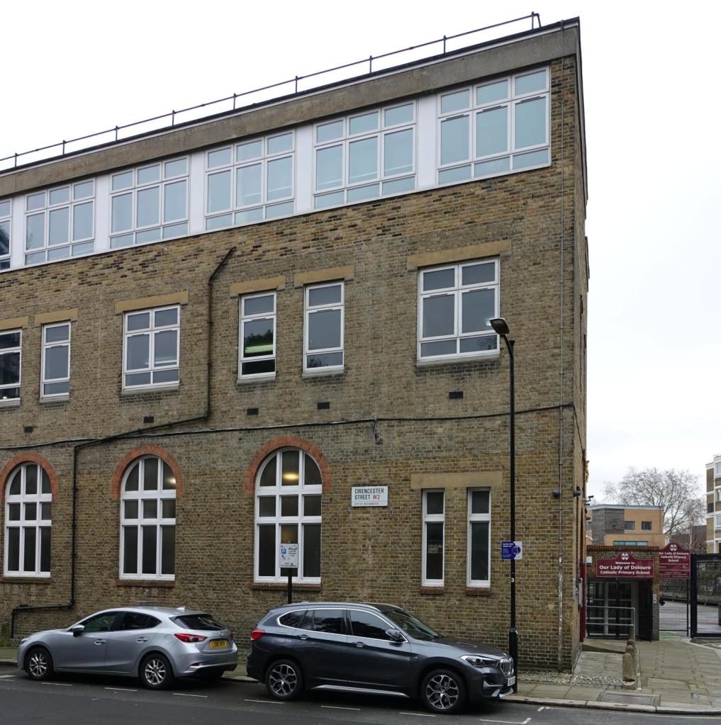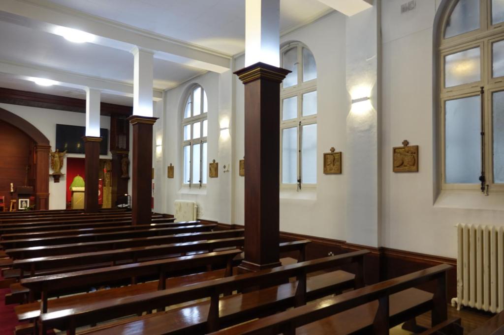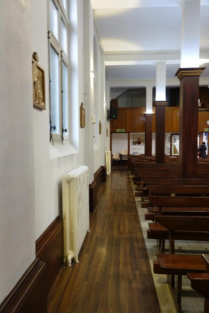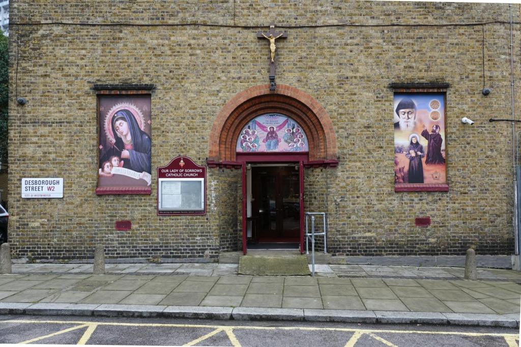 An unusual building of 1912 next to a school which had its hall built on top in 1916. The east end was damaged by fire in 1966 and rebuilt and refurnished during 1967. Until 2023 it was also home to a Lebanese Maronite community. Some of their art is still here but they now worship in the other church in the parish in Harrow Road.