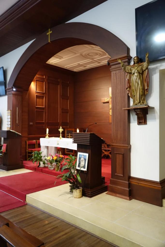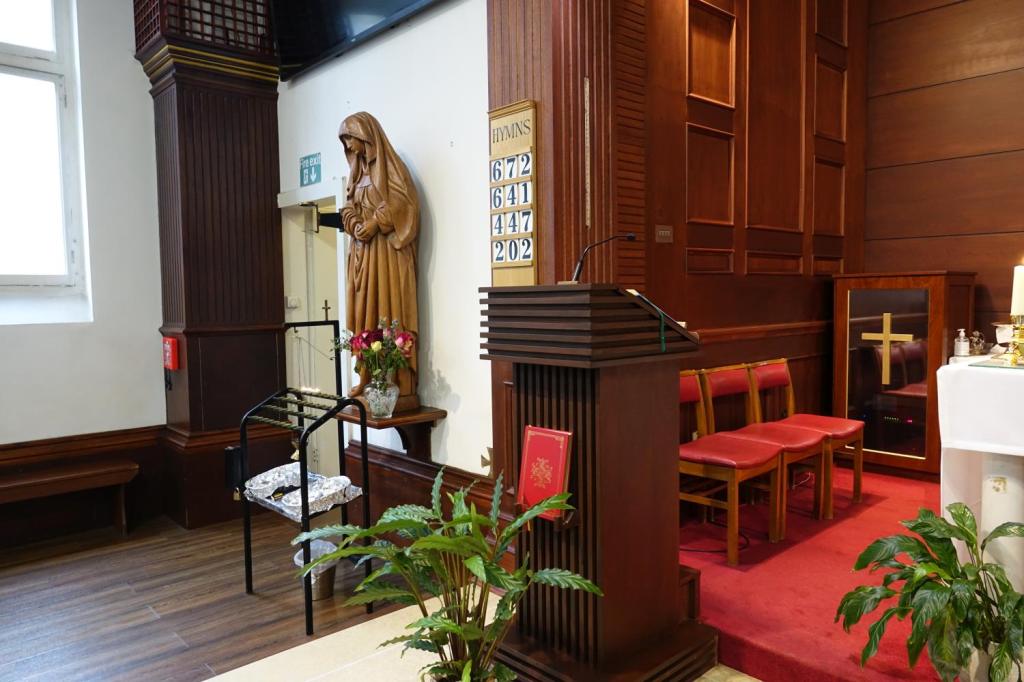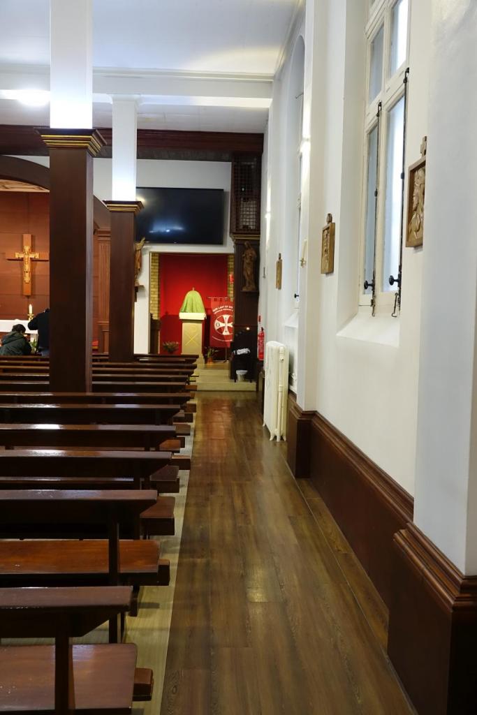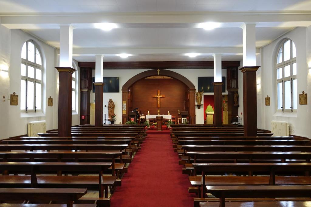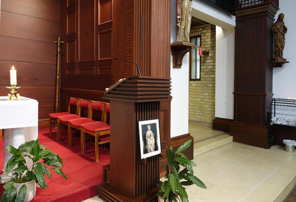 An unusual building of 1912 next to a school which had its hall built on top in 1916. The east end was damaged by fire in 1966 and rebuilt and refurnished during 1967. Until 2023 it was also home to a Lebanese Maronite community. Some of their art is still here but they now worship in the other church in the parish in Harrow Road.
