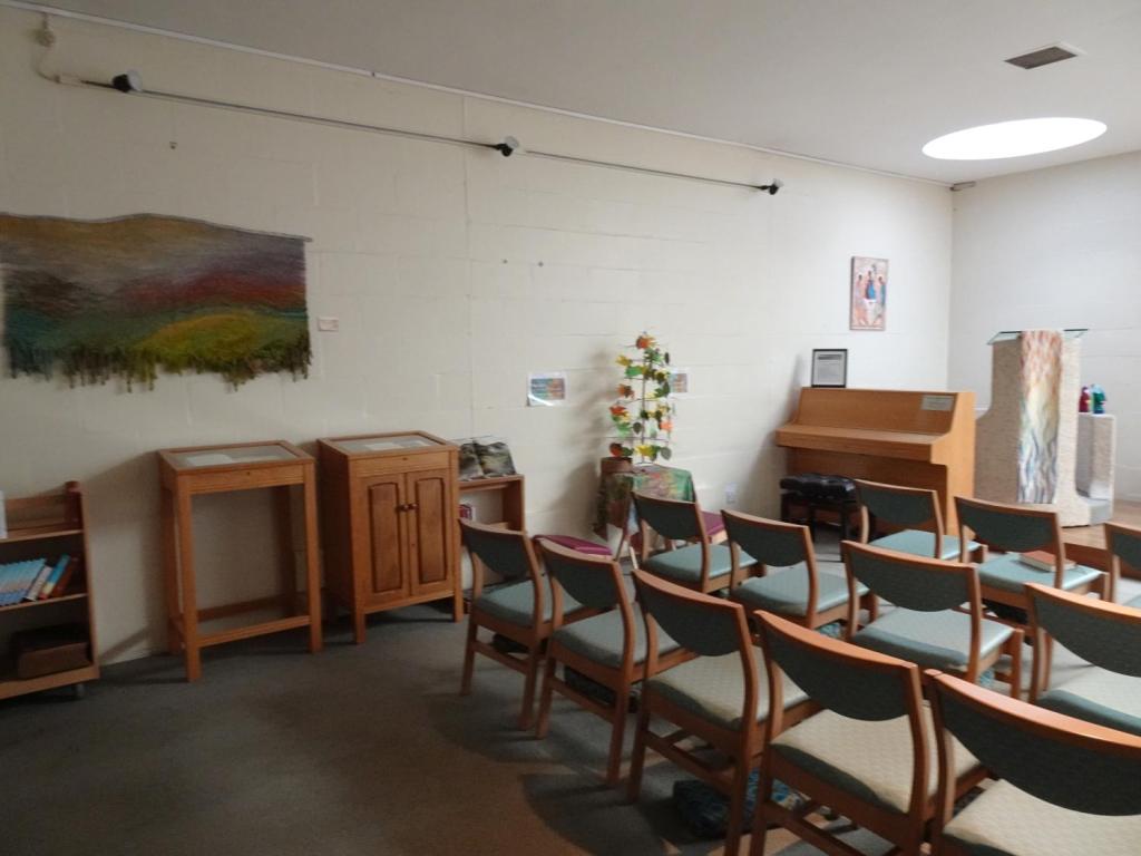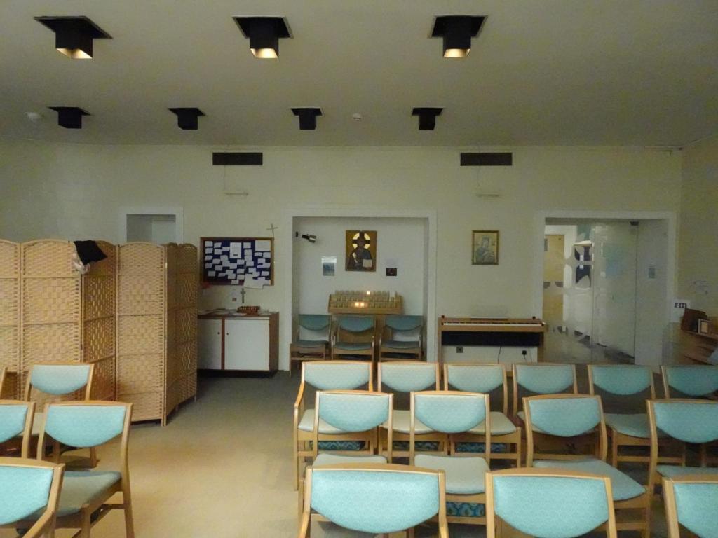 A simple multi-faith space. On the ground floor of a hospital built from 1938 and designed by Saxon, Snell & Phillips.