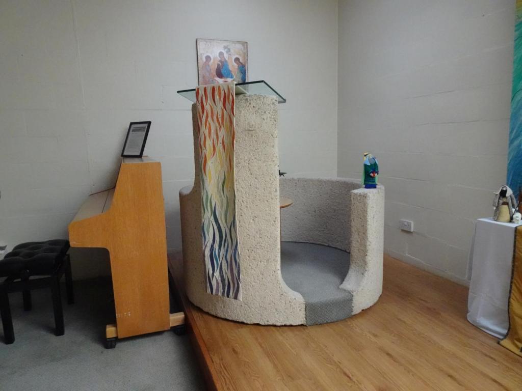 At the rear of this small community hospital it was built through fund raising by the hospital League of Friends in 1998.