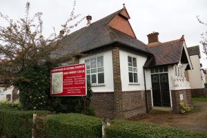 This is the chapel for the large Croydon cemetery and dates from 1897. There was no sign that this building was being used by the Romanian Orthodox church either at the building itself or at the main road entrances to the cemetery when photographed in 2019. This Romanian Orthodox community no longer uses this building, they are now based in the renovated church hall of St Peter’s on Bishopsford Road.