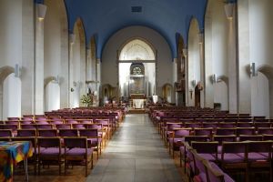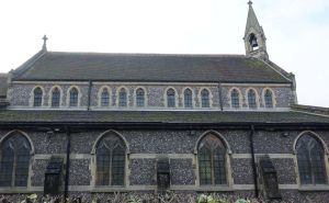 Not far from the Anglican St Mildred, it is a large church of 1963-1964 by Denny & Bryan. Inside one transept contains the Lady Chapel which is separated by a glass screen from the church and has its sanctuary also screened off by sliding glass doors.