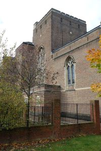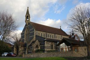 A little nearer the centre of Addiscombe than the Roman Catholic church and Parkview Church this is a large church of 1931-1934 designed by Cecil Hare and his last church. A whole complex of buildings was constructed around its westwards and northwards to give extensive community facilities in 2007. Included in this is a small open courtyard chapel between the church and the extension. The interior of the church was redecorated in late 2018 giving it a very fresh look inside.