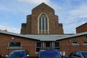 Some way west of central Thornton Heath, this building was built in 1927 and designed by W Pite, Son and Fairweather. The hall next door built in 1911 was used as a church until the current church was opened. The west end was never completed as planned.