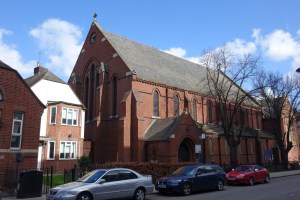 A church of 1883-85 by J.E.K. Cutts on the eastern edge of the common. The western bay was divided off in 1972. The 19th-century glass is by Heaton, Butler & Bayne. The Stations are hung as haphazardly as the images show, they are interesting in that they reflect the fact that the church has a largely Afro-Caribean congregation.
