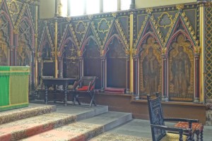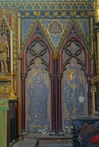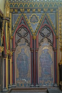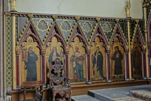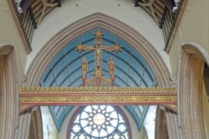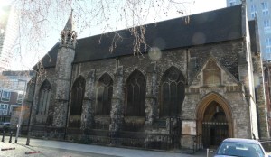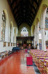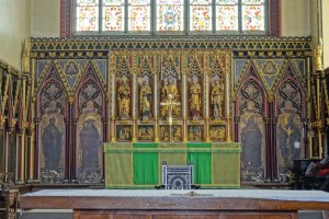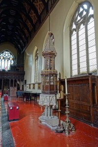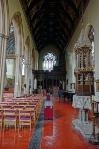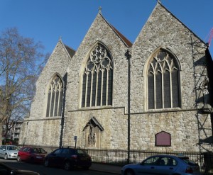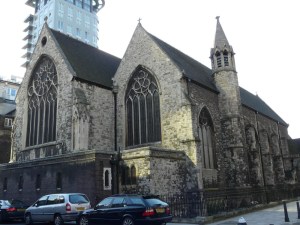 One of the earliest scholarly gothic revival churches. A short way west of Euston and north of Euston Road, it dates from 1849-52 and was designed by R.C. Carpenter, with the south aisle added in 1883-84 by his son R.H. Carpenter. The chancel decoration is by Daniel Bell and Richard Almond, the reredos was added by Charles Nicholson in 1935 and the rood by J.T. Micklethwaite. The great east window is by Hardman to Pugin designs, though much restored.