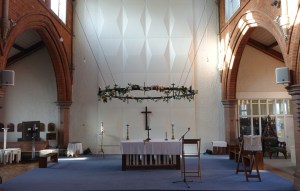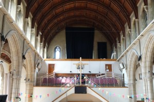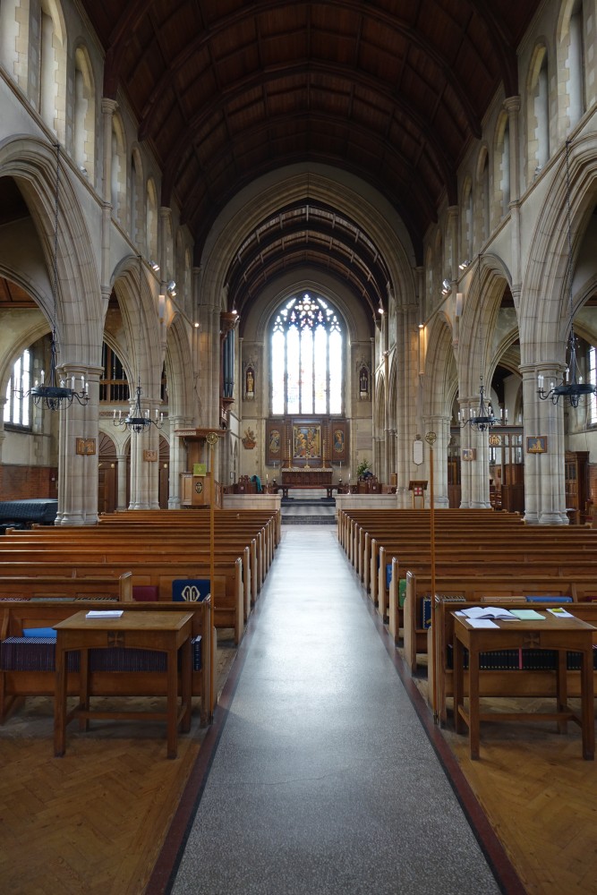 On the edge of Wendell Park at the western end of Shepherds Bush. The nave dates from 1888-89 by C.N. Tudor with the chancel added in 1894. A 1970 reordering by Norman Haines has meant that the western half of the nave is divided off as a nursery school and community centre, the sanctuary at the west end of the rump nave and the office in the sanctuary area which has gained an organ gallery.