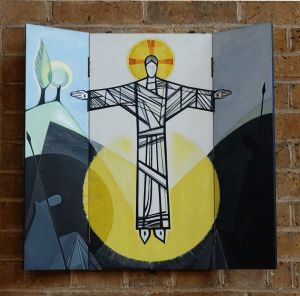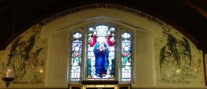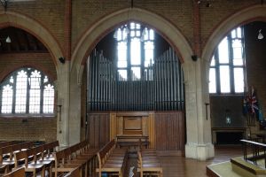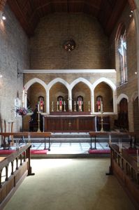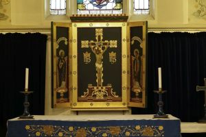 Alongside the road, hiding a large ASDA superstore, north west of Southgate town centre. The church dates from 1903 and is by A.R. Barker with the sanctuary and north chapel added in 1916 by Barker and Kirk. There are striking modern stations of the Cross and a Triptych and several windows by local firm Cakebread Robey.