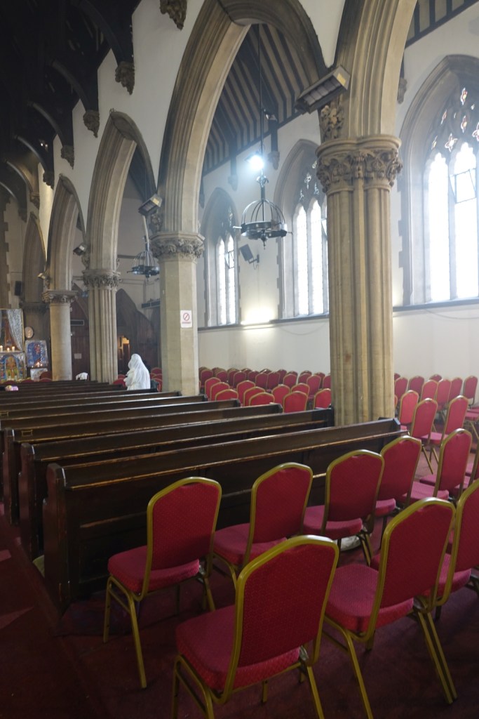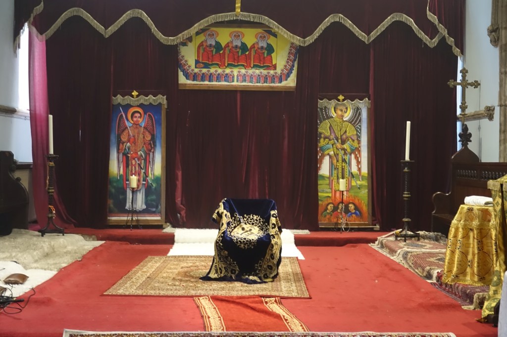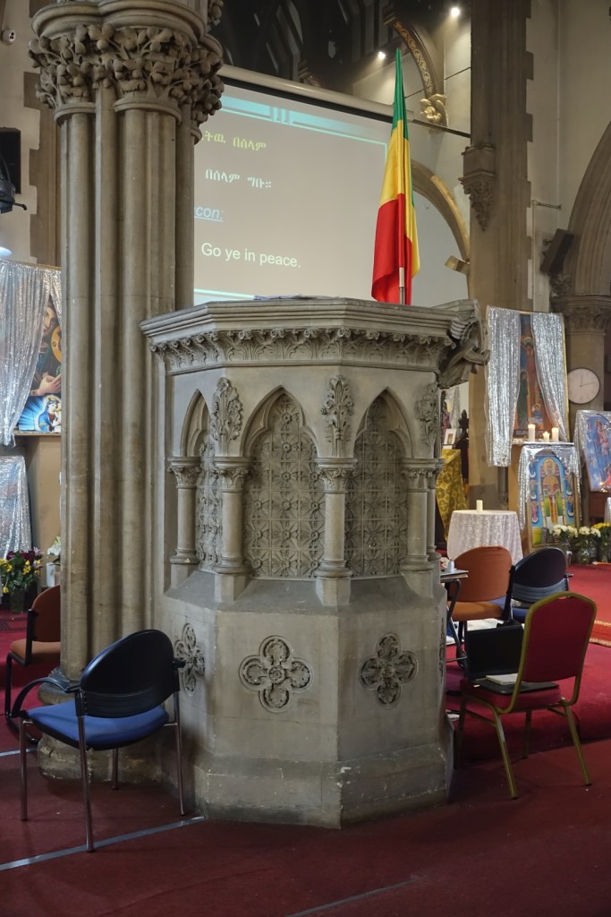 Built for the Park Town Estate by James Knowles junior in 1869-70. It has been used by the Ethiopian Orthodox Church for many years and since redundancy in 2007 they have had sole use, owning the freehold since 2010. The interior was photographed after a service when the air was full of incense which may make some images somewhat misty.