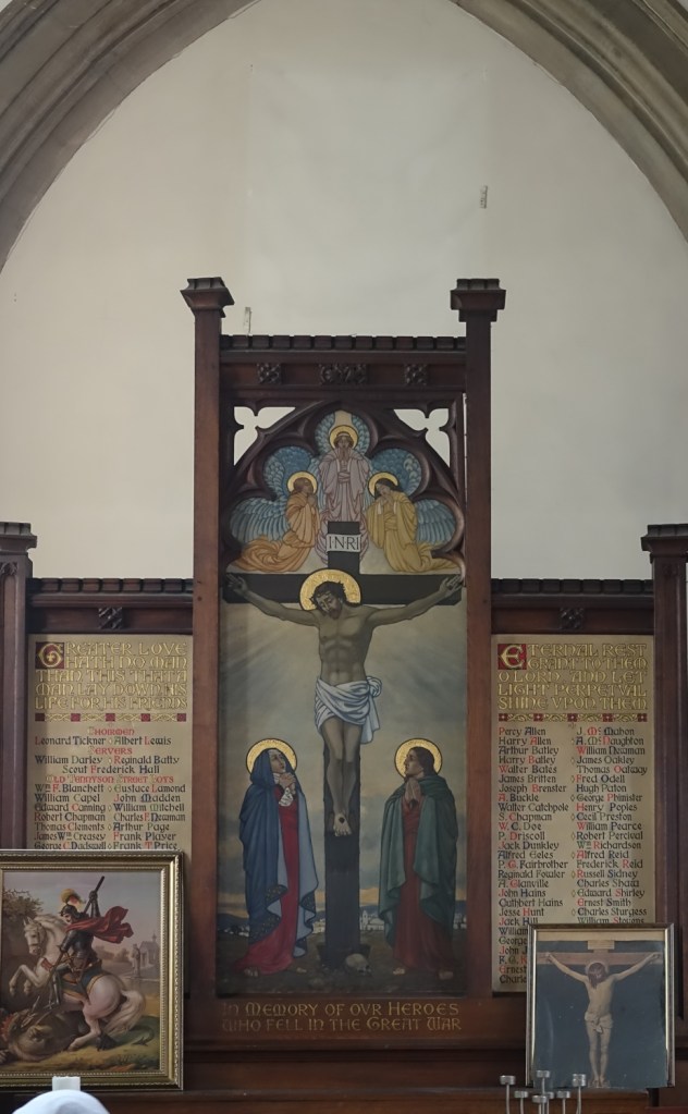 A William White church of 1872-74, now with offices added on the western and southern sides. There has been some reordering inside but many of the listed fittings such as the font, pulpit and roof shields have been retained. There is also a large amount of naturalistic carving on the capitals. Under the chancel, there is a vaulted crypt.