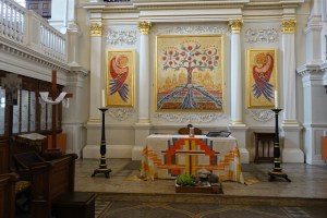 An large and early J.F. Bentley church of 1882 facing a park and the Anglican church on the opposite side. The reredos dates from 1889, although it has been reduced in size since then.