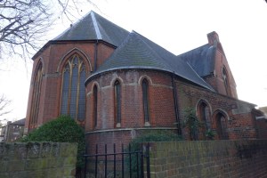 This church closed in 1975 and all that remains is the tower and spire attached to a building called St Catherine’s House. This was built as offices by Biscoe and Stanton in 1979-81 but is now a hostel for the homeless. The church was designed by Carpenter and Ingelow and built in 1878-80 but the tower was only added in 1898.