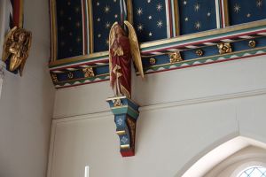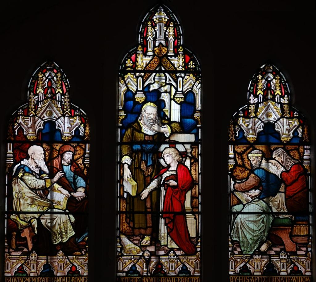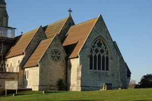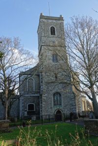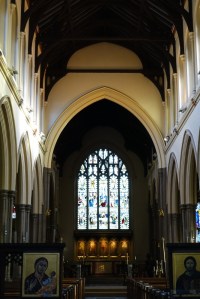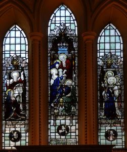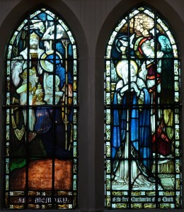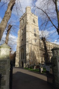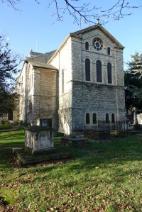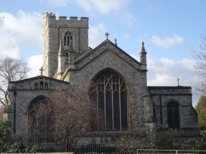 At the north end of Putney Bridge facing across to Putney Parish Church, this is the old parish church of Fulham on the edge of Bishop’s Park. The tower dates from 1440 but the rest was rebuilt in 1880-81 by Arthur Blomfield. Inside there is a large collection of monuments from before the rebuilding and much, mainly Heaton, Butler and Bayne, glass. Some medieval pieces remain together with an older Wailes window and a later one by Margaret H.E. Rope.
