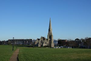 A landmark on Blackheath as it is surrounded on all sides by the heath with no separation at all. It was designed by Benjamin Ferrey and built 1857-1867. The porch and vestries were added in 1890 and 1899 by A.W. Blomfield. Many windows were blown out in WW2 leaving a light interior. The screen is a WW1 memorial.