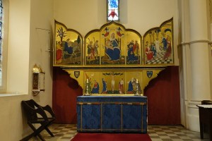 Near the Regent’s Canal and the Zoo a church by Thomas Little of 1851-52, to which Blomfield added a chancel in 1890, however war damage meant that the roofs and east wall were by A.P. Knapp-Fisher and date from 1957. There are Ninian Comper altarpieces and stained glass that were added after the war, replacing damaged items by the same artist.