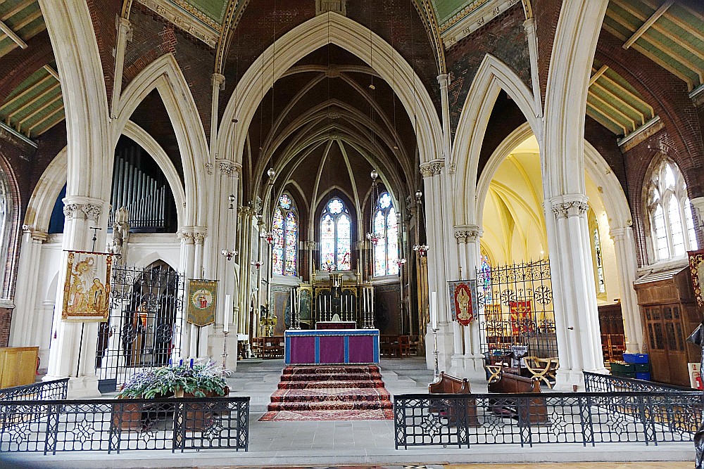 A Bodley & Garner church of 1890-92, with the western bays of the nave added by Cecil Hare in 1911-12. The name comes from this originally being a mission to the east end from Eton School. The church has recently been restored alongside the construction of new buildings on either side of the site. The lower photos show the church in December 2012 prior to the work,the upper ones post restoration in September 2017.