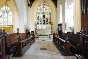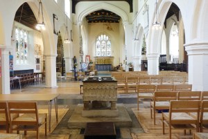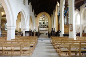 Hidden away behind shops in the town centre. The tower dates from around 1507 but was encased in flint and stone in 1903-04 when G.F. Bodley added a chancel and eastern chapels to a classical nave and aisles of 1750. There are many wall monuments and much glass by Burlison and Grylls, Bodley’s favoured firm. The church is undergoing a long-term restoration.