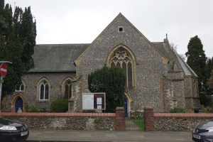At the southern end of Bromley Common. It dates from 1839 with the tower added in 1842 all by Thomas Hopper. The apse and stone tracery was added in 1884 by C. Pemberton Leach.