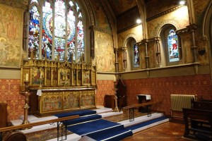 About a mile north of the town centre. The nave was built in 1863-64 and is by Waring and Blake, next came the chancel of 1881 by W.R. Mallett, followed by a south transept in 1891 and a north transept in 1899-1900 both by Wadmore, Wadmore and Mallet. Intended nave aisles were never built. The chancel contains a scheme of wall and ceiling decoration by Ward & Hughes, who also made the stained glass in the church.