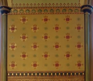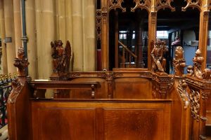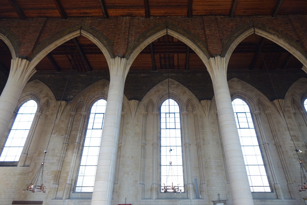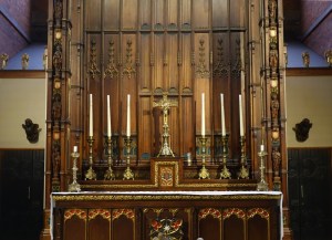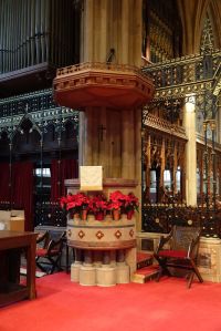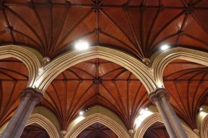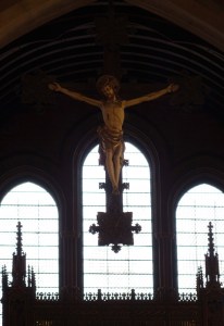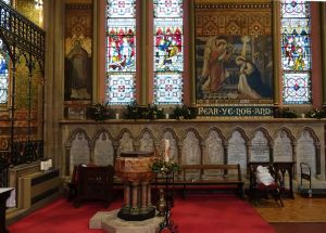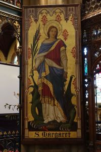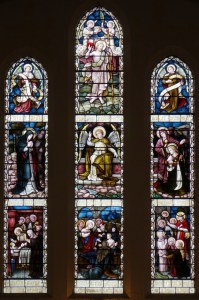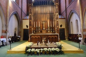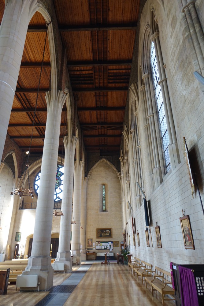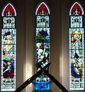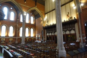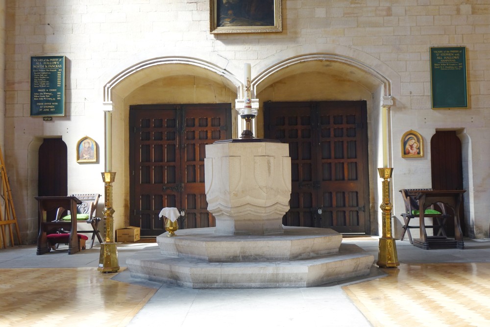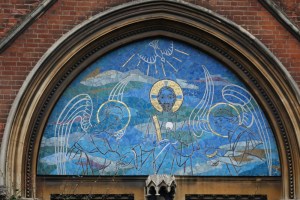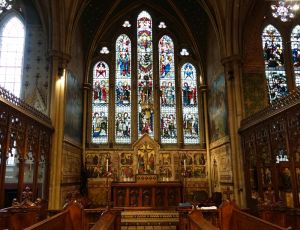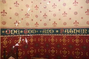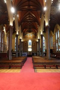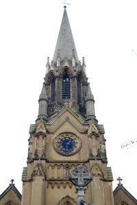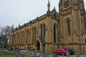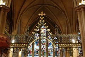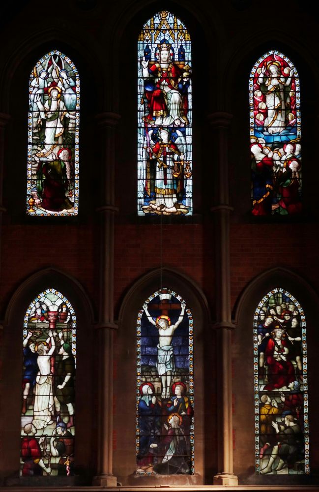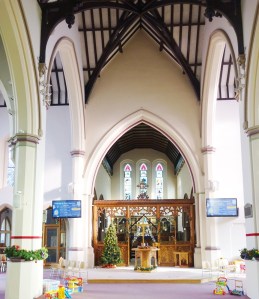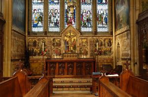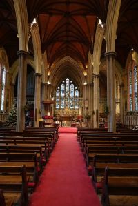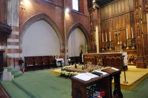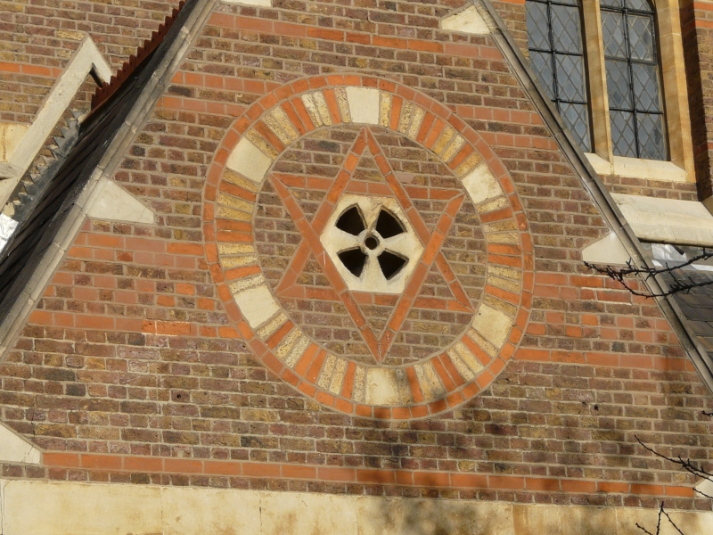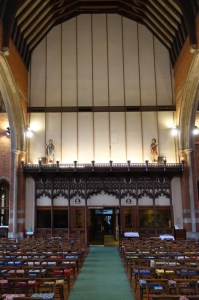 Designed by James Brooks in 1887 and built 1889-91. In 1991 the church was divided horizontally and vertically with the western end becoming halls and a nursery, leaving the transepts and chancel as the church space. The Lady Chapel at the eastern end of the south transept was also removed. Older halls to the south-east were replaced by housing. The interior is still typically Brooks and contains a huge baldacchino by Ernest Geldart and glass designed by Henry Holliday.