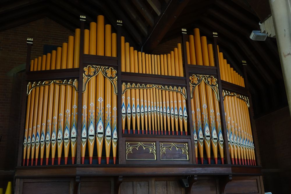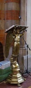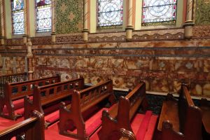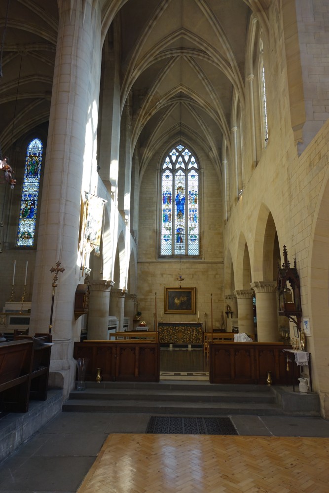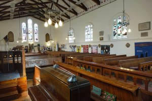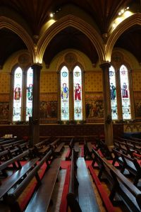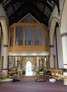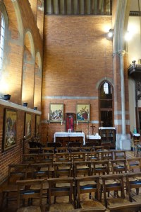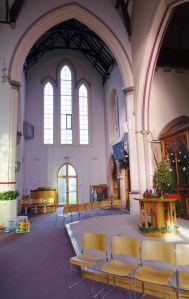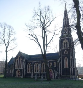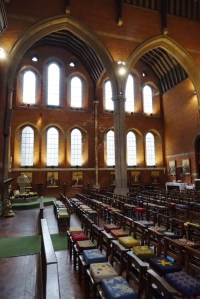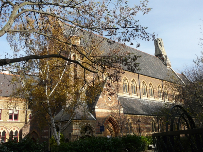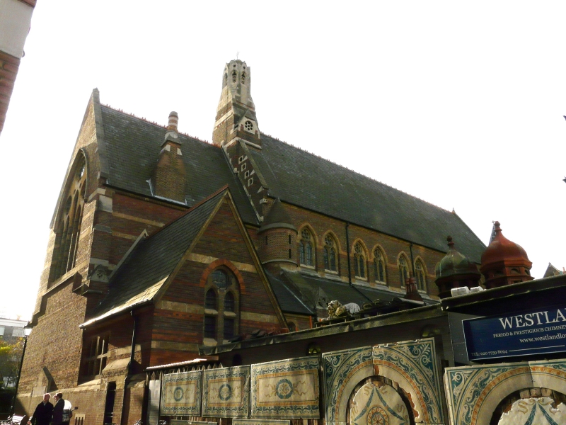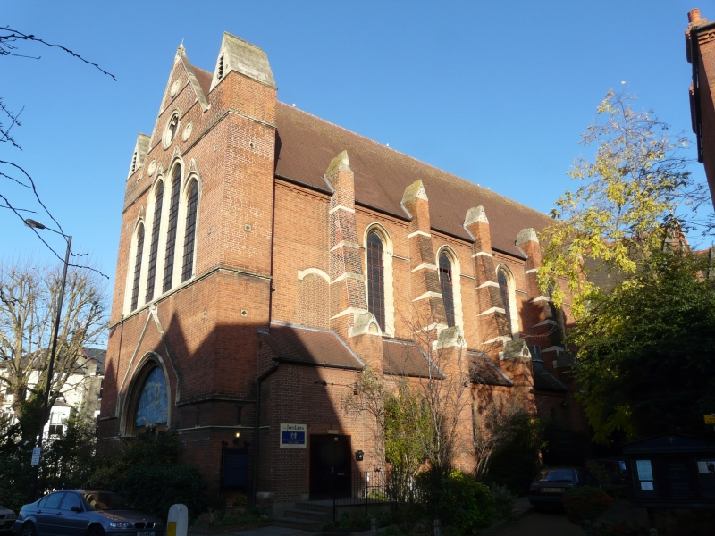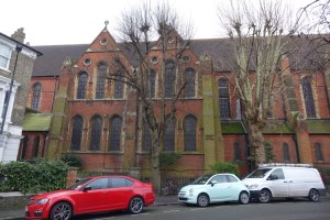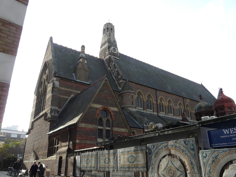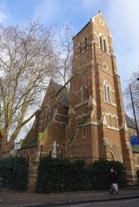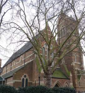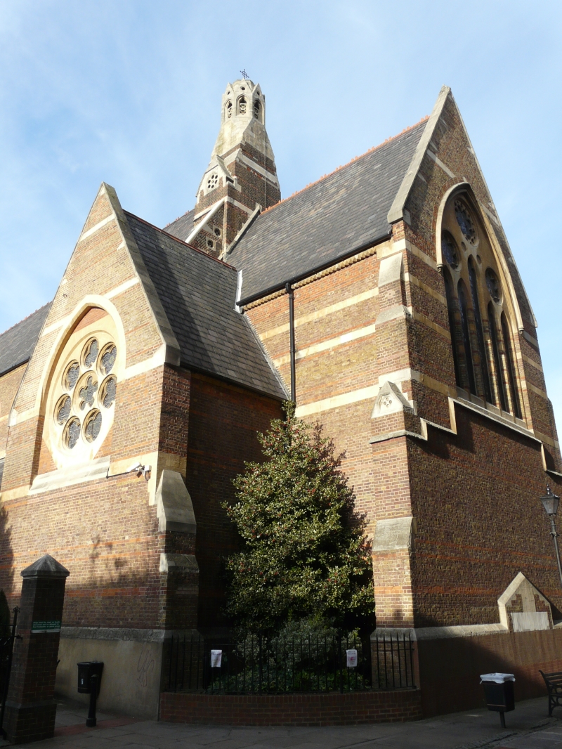 Set in the middle of Turnham Green a little way off the main road, this is an early Gilbert Scott building, in fact by Scott and Moffatt and dating from 1841-43. A longer chancel was added by James Brooks in 1887. The nave interior has been divided in two with only the chancel retaining older furnishings.