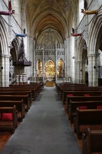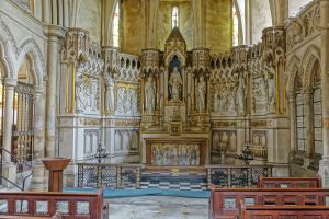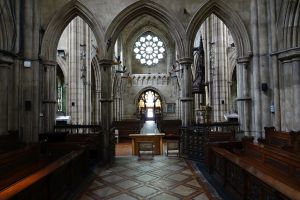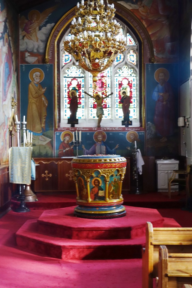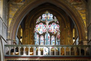 A James Brooks church of 1868-70. Now used by the Brazillian-originated Universal Church of the Kingdom of God. The church is divided horizontally and vertically. The chancel contains an auditorium for Portuguese language services which are held in parallel with English language services in the nave. The north transept contains a full immersion font and the crossing and south transept stairs and a lift to the upper levels. None of the Anglican fittings survive.
