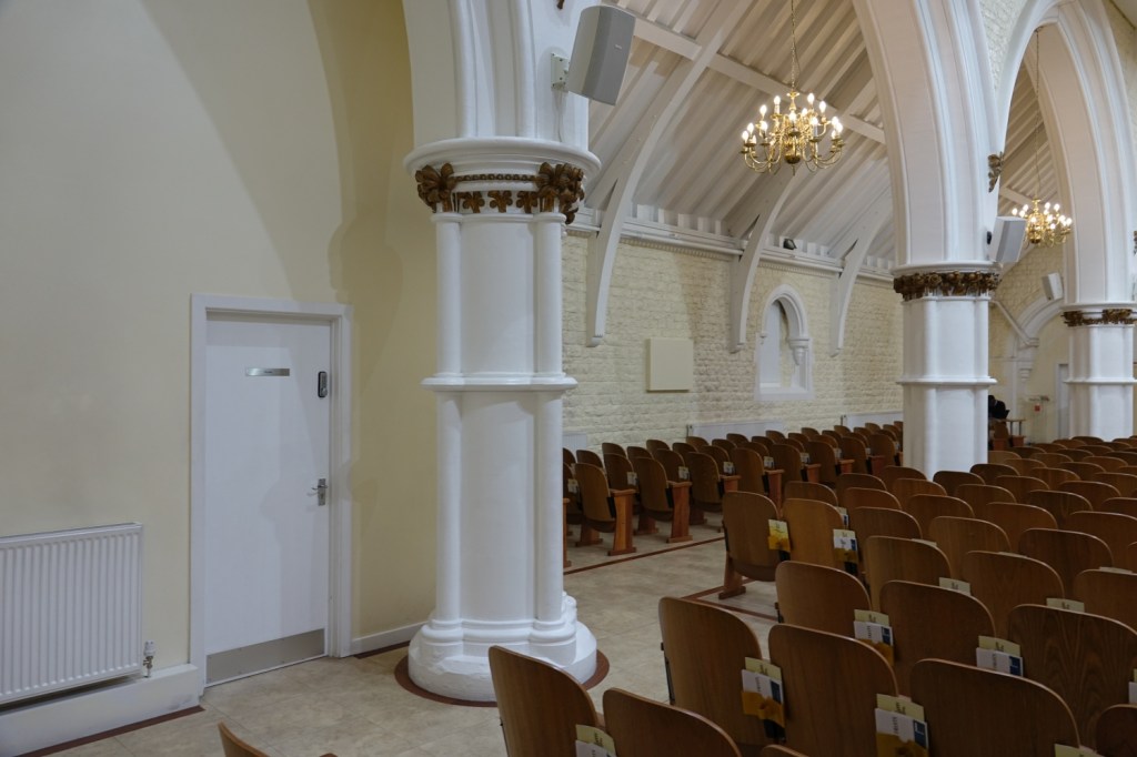 No longer in use by the Church of England, since 2003 it is has been used by an evangelical church as “The Tabernacle”. It is one of James Brooks’ large brick built churches for poor areas and was built in 1881. It was originally dedicated as Church of the Transfiguration but was renamed in the early 1940s when it became a “St Barnabas church for the deaf and dumb”.