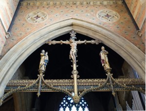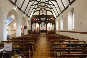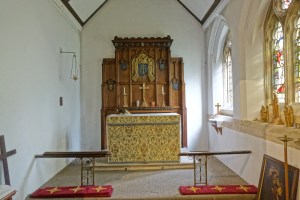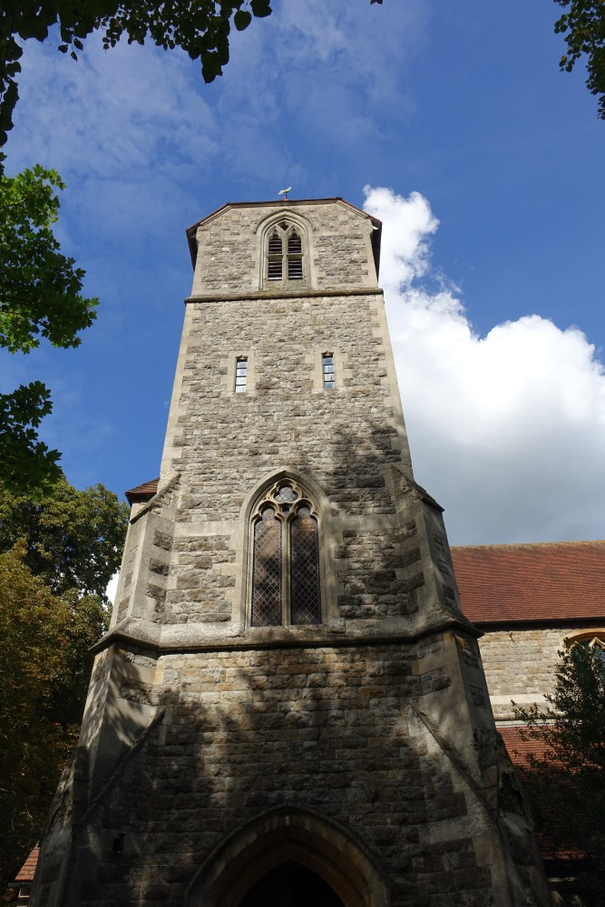 A late William Butterfield church of 1883. It sits on a hilltop above Enfield and near the Ridgeway. The chancel was decorated in 1897 with designs by Nathaniel Westlake and Charles Buckeridge. It was restored in 2012 and presents a great contrast with the rather plain nave. Much of the stained glass was designed by Butterfield and made by Heaton, Butler and Bayne.