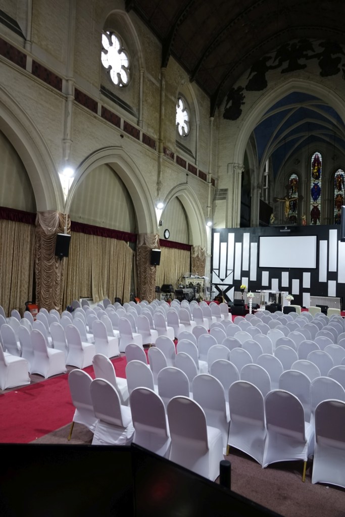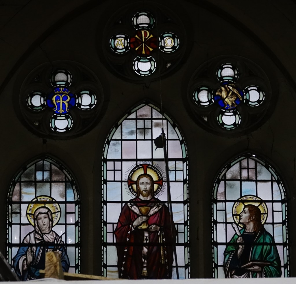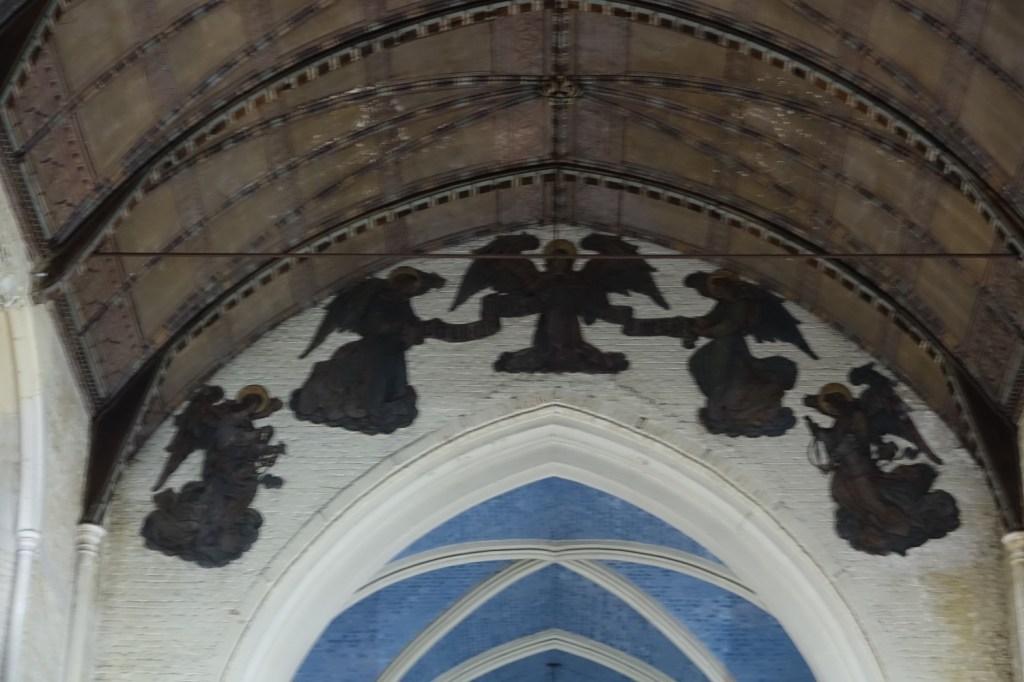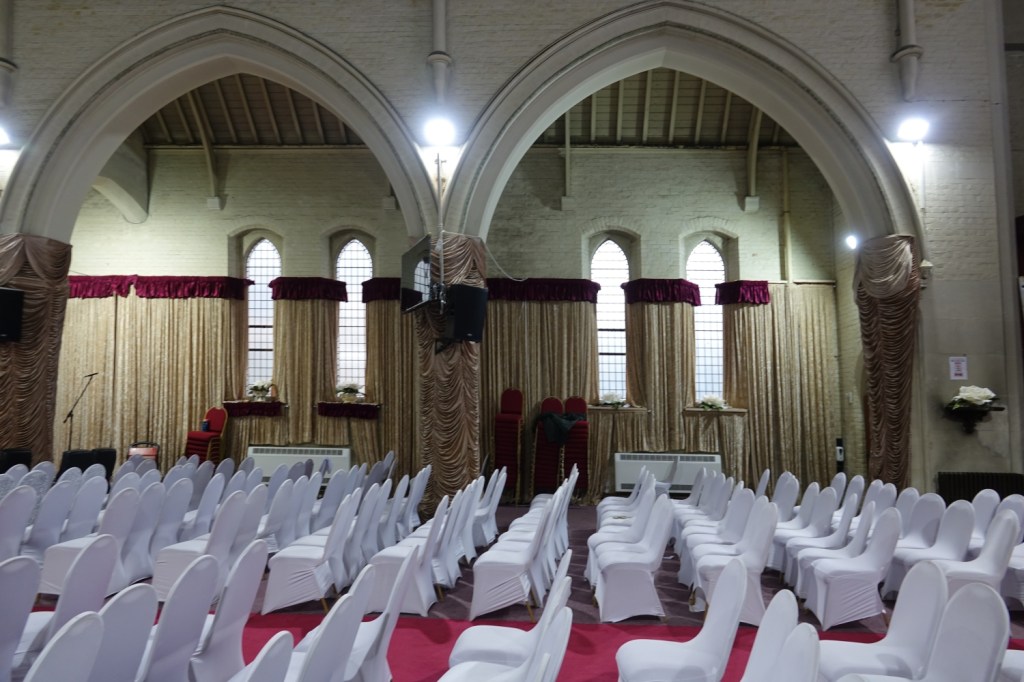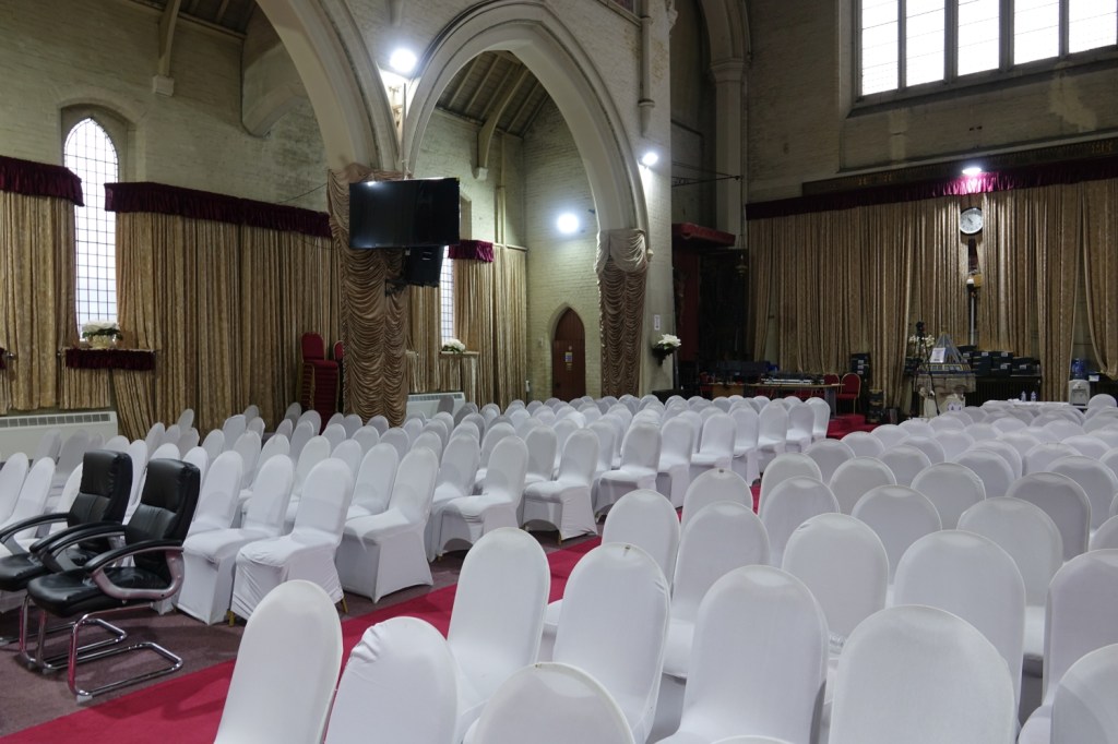 Sold in 2014 to a Ghanaian church called Church of the Pentecost UK. It stands high above Woolwich Dockyard station, the chancel is by J.W. Walters dating from 1875 to which the large nave was added in 1887-1889 by William Butterfield. In 1955 Thomas F. Ford added an aisle and a transept. Inside the chancel has been blocked off to create an office and storage area, but wall decoration and screens are intact behind the wall. I suspect there is a reredos, too but it was inaccessible on my visit.