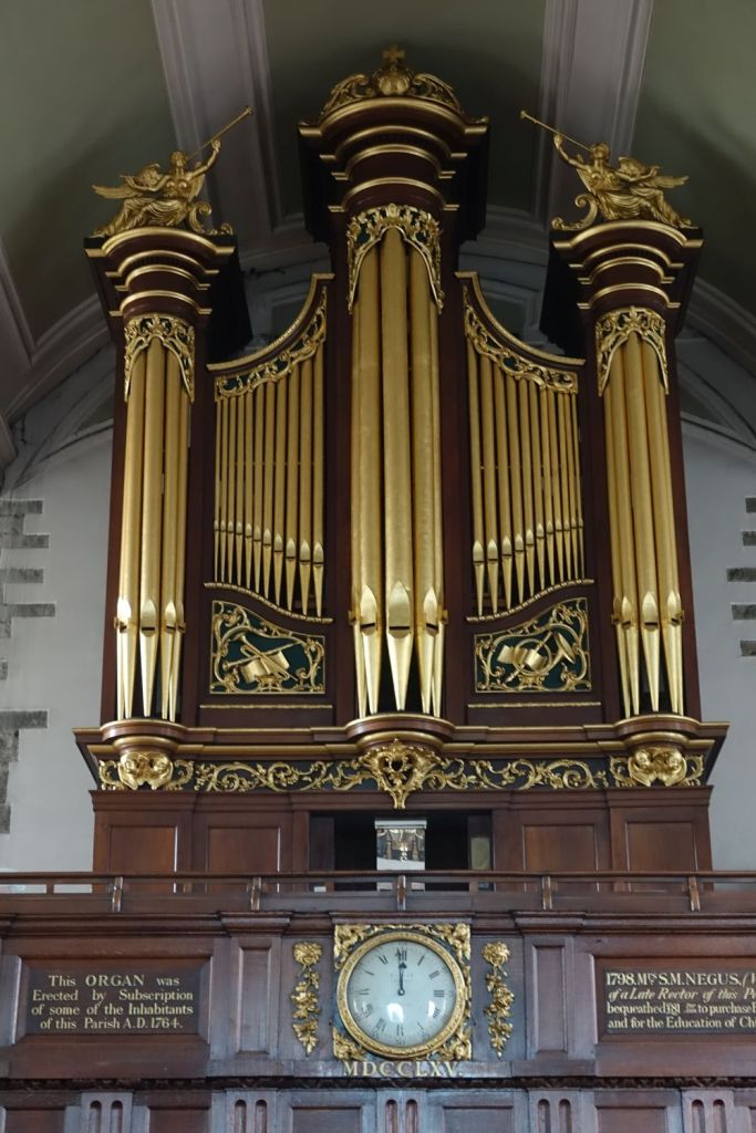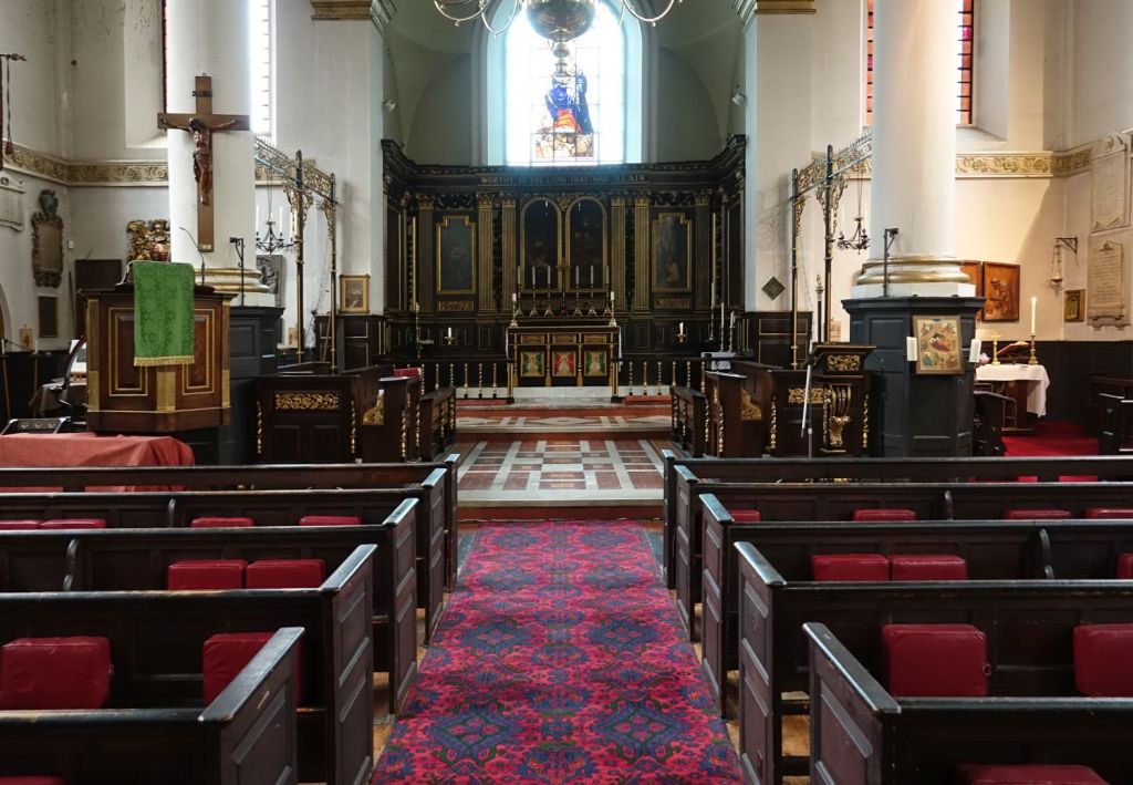 In narrow streets between the Thames and the station, this is Rotherhithe’s old parish church. The medieval church was replaced over the period 1714-1747 by this classical building attributed to John James and Lawrence Dowbiggin (Tower). A restoration was carried out in 1876 by William Butterfield.
