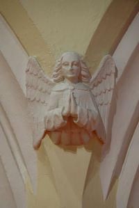 An eccentric exterior by Inwood and Clifton 1837-1839. The interior  was rebuilt by A Llewellyn-Smith within the old walls in 1957-58. The main feature is the martyrdom of St Stephen by Brian Thomas. The interior was being set up for filming when I visited.
