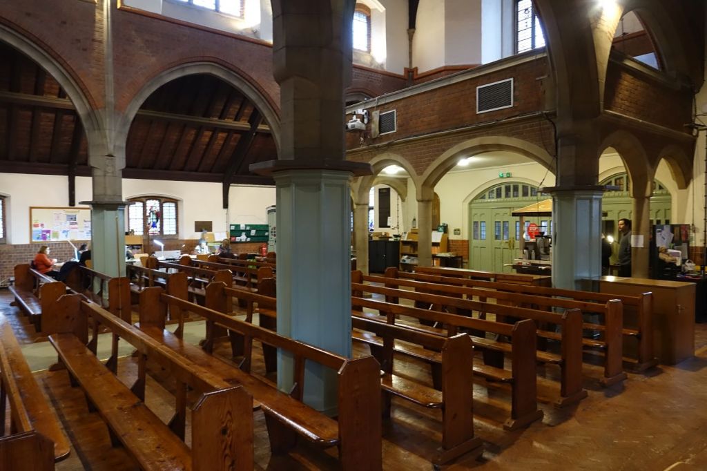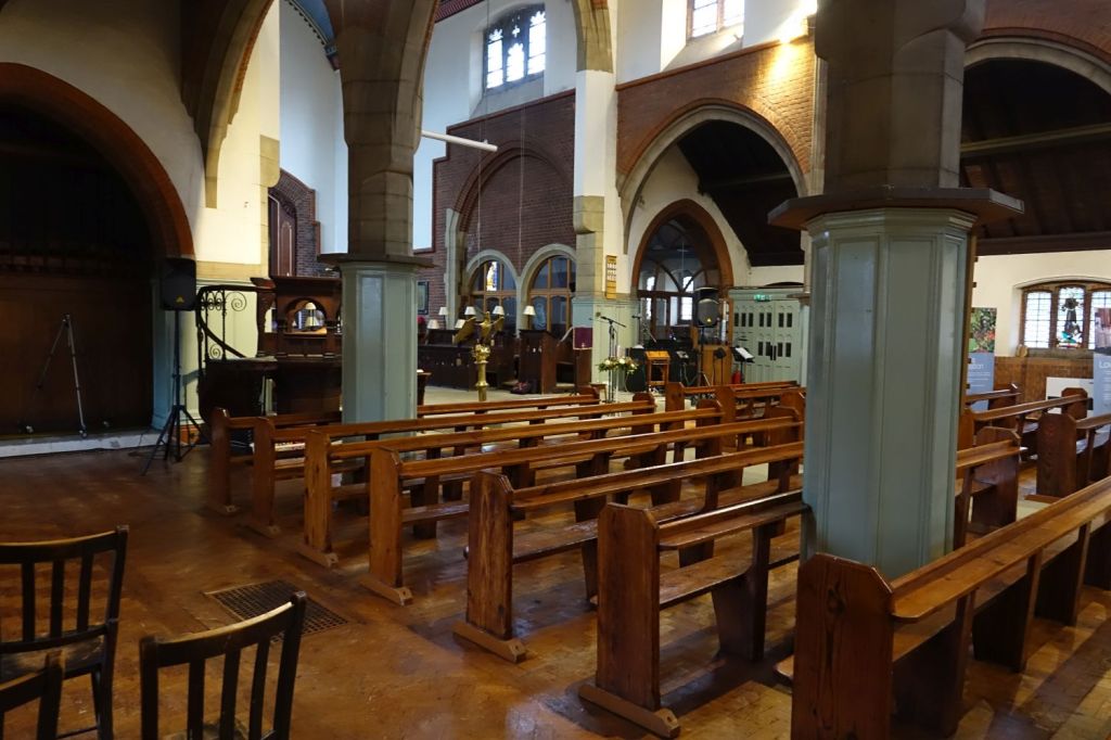 A suburban church just south of the busy Great West Road. It is by W.D. Caroe and dates from 1908-09