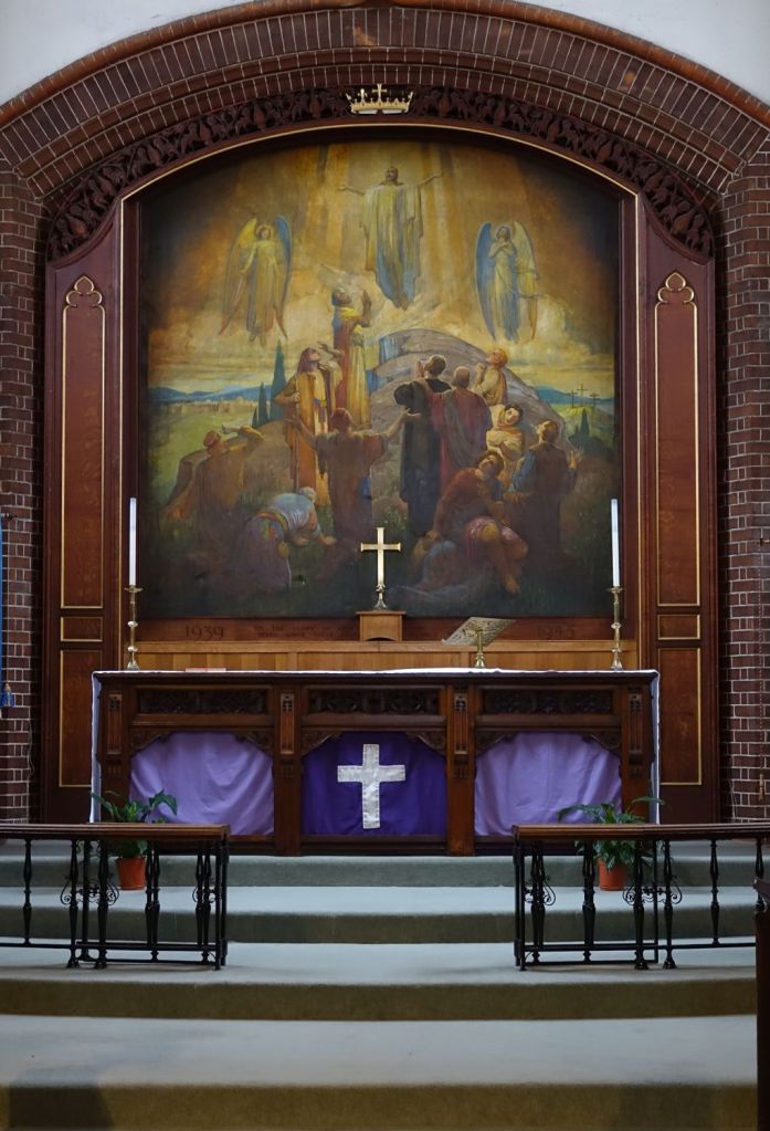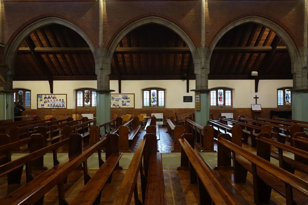 Actually very close to Wallington Roman Catholic Church. It is by W.D. Caroe and dates from 1906, it was left unfinished until 1929 when a shortened version of the nave and west end was added. The tower was never completed. The east-end images are from an earlier visit as those views are not now accessible.