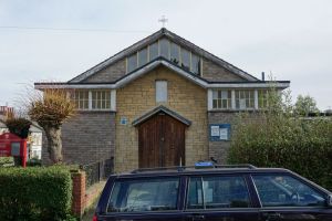 Well to the north of the village this is a church of 1849-1850 by Joseph Gwilt. Inside the west end of the nave is divided off as a flat-ceilinged hall while the east end and apse are still used as a church with a curved ceiling added. Above these spaces, the building has been divided up into halls, from which the original timber roof is visible.
