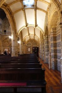 A college of the University of London. The chapel is entered from within the college buildings. The original building was by Robert Smirke and built in 1829-1831, however, it was drastically reconstructed by G.G. Scott in 1861-1864 with further decoration throughout the rest of the 19th-century. A restoration of 2000 by Inskip & Jenkins reversed mid 20th-century decorative changes and returned it to its 19th-century appearance. The glass was added at the 2000 restoration and is by Joseph A Nuttgens.