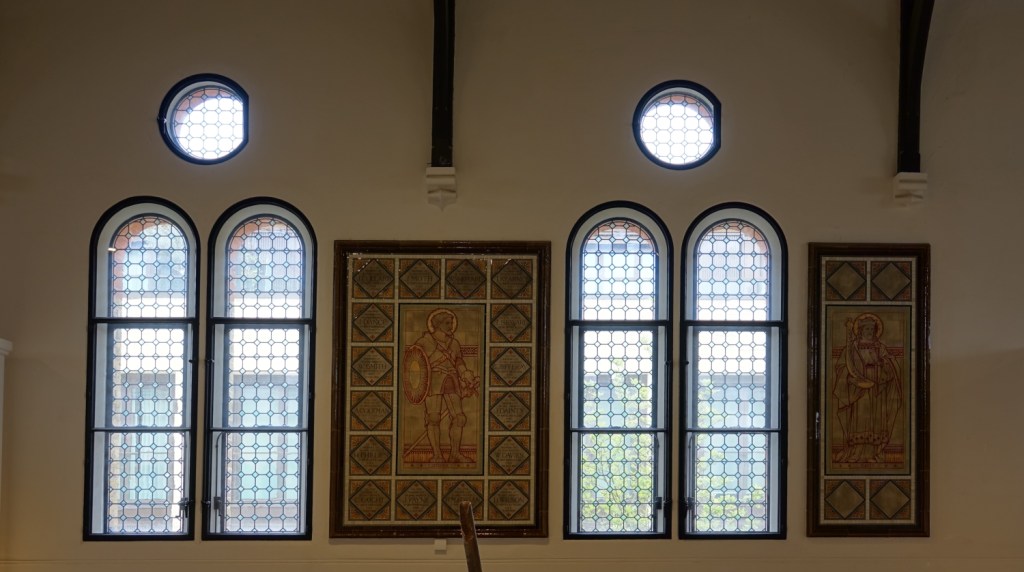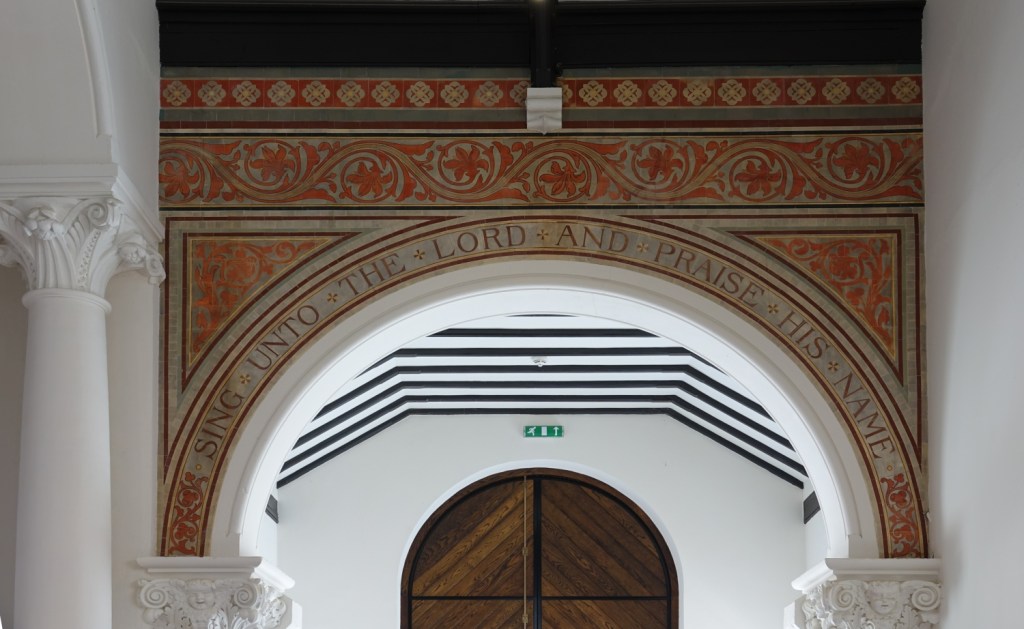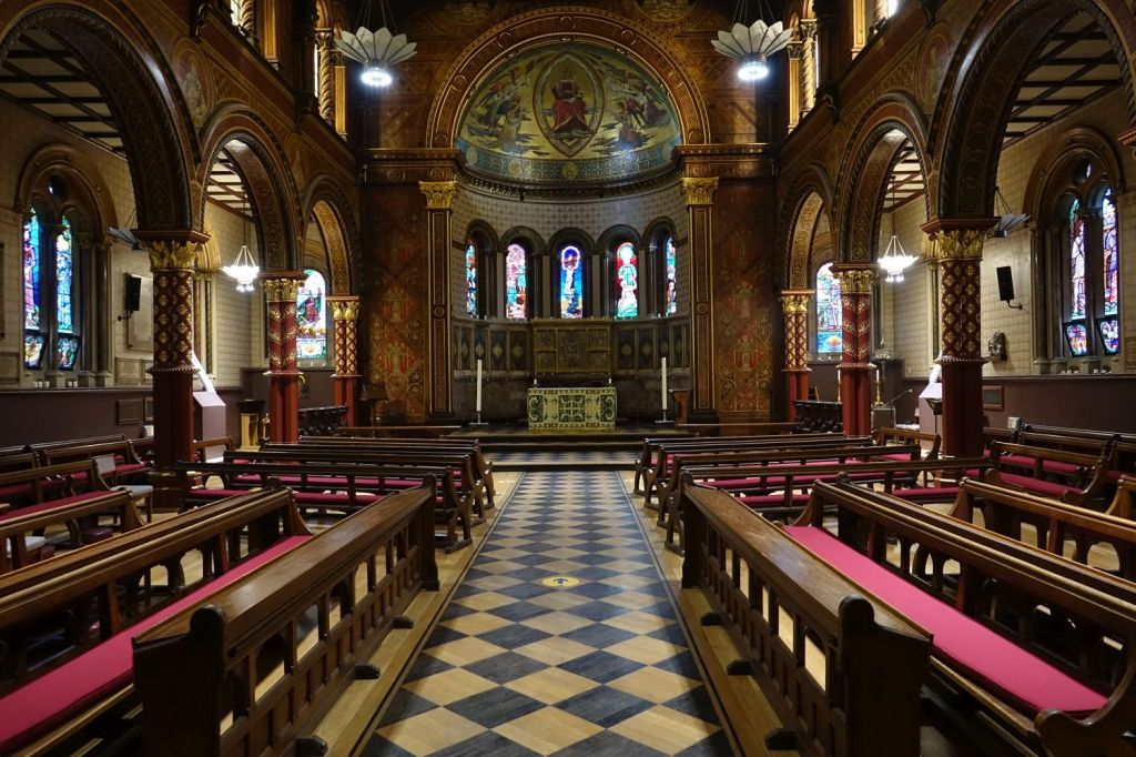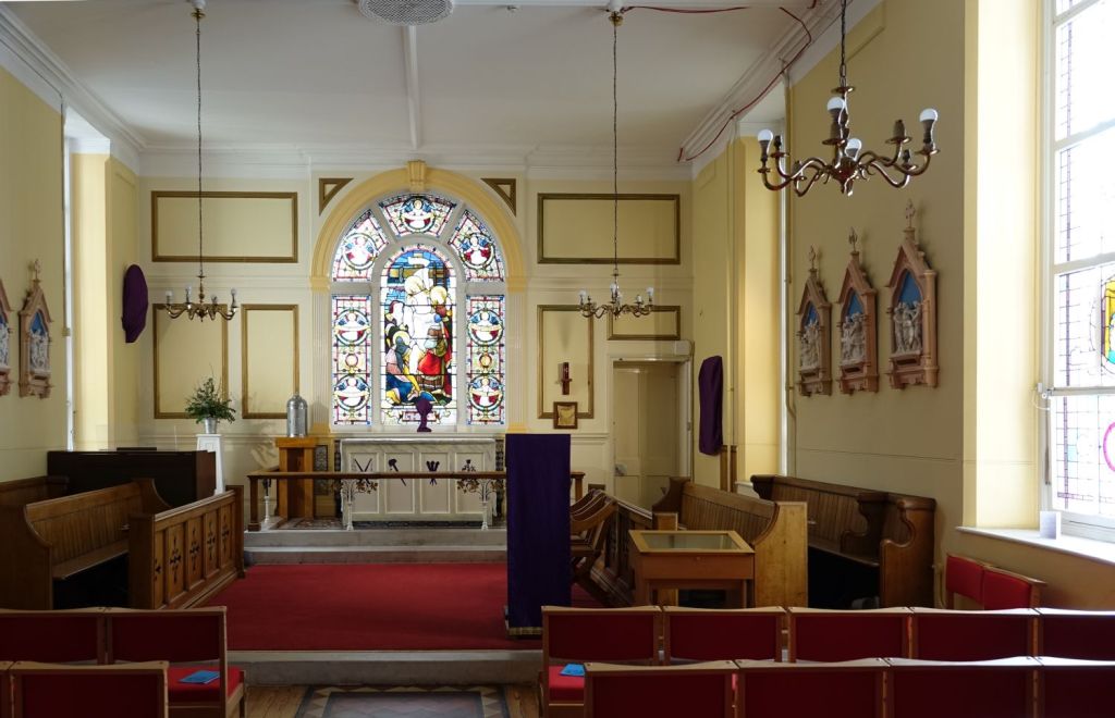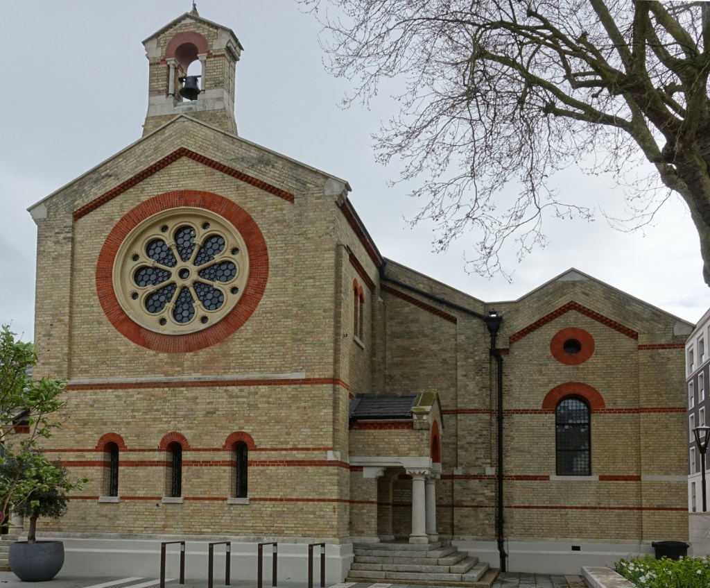 Built 1861-1863 and designed by George Morgan. The south aisle was added around 1890. It was deconsecrated in 2012 and in 2018 was restored to become a gallery and exhibition space with offices in the north aisle and now used by the King’s Foundation
