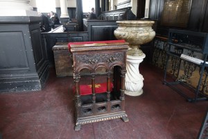 Designed by Thomas Cundy II in 1840-1843. In 1870-71 the chancel was lengthened by R.J. Withers in 1870-1871 and then further extended by G.F, Bodley in 1891-92 Bodley is also responsible for many of the church’s fittings such as the screen, reredos and organ case. The Stations date from 1920-1922 and are by Gerald Moira and the tiled decoration was added 1869-1879 and is attributed to Daniel Bell.