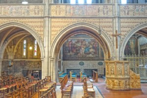 Alongside the Grand Union Canal this is one of George Edmund Street’s masterpieces dating from 1868-1878. It is fitted onto an awkwardly shaped site, defined by now demolished streets. Most of the glass was designed by Henry Holliday and made by Heaton, Butler and Bayne. The south aisle of the crypt (the bottom 10 pictures) was made into the chapel of St Sepulchre by Ninian Comper in 1895, it was renovated by Sebastian Comper in 1967. When I visited in 2012 this was in need of restoration, which was carried out in 2019. At that time the west end gained an extension called Grand Junction containing a cafe and community facilities. The top set of images is from 2025 and the lower set is from 2012.