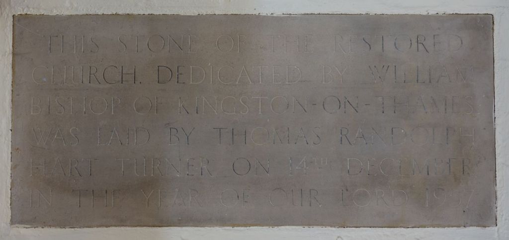 Several churches in the London suburbs had to be adapted from small medieval buildings to one that could cope with a much larger suburban population. In this case the south aisle was demolished and much larger aisles, nave and chancel were added at right angles in 1958 and designed by Sebastian Comper. The old church is now an entrance area with the chancel used as a chapel and the north aisle as a vestry. The new church interiors are in the last 6 rows.