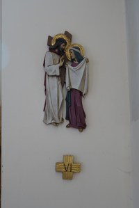 Joined to West Drayton, but north of the railway line and firmly in the main shopping area stands this church of two parts. The nave is by Nicholson & Corlette 1897-98, the north aisle was the original church and is by G.G. Scott dating from 1858-59. This aisle is now separated off to form a hall area, with a modern extension and the chancel area forms a small Lady Chapel.