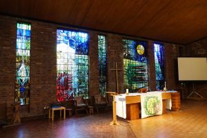 A free standing building in a garden at the rear of the hospital on Woodcroft Road. It is now a multi faith space but still Christian in general look and feel with a sanctuary and stained glass.