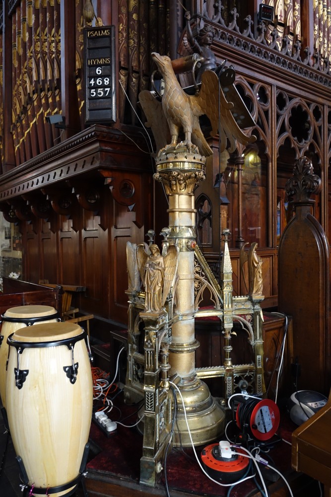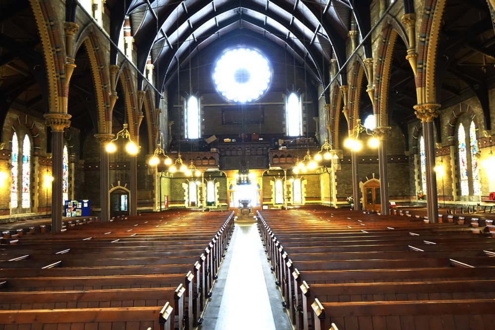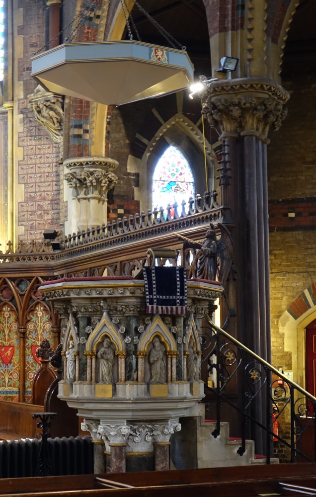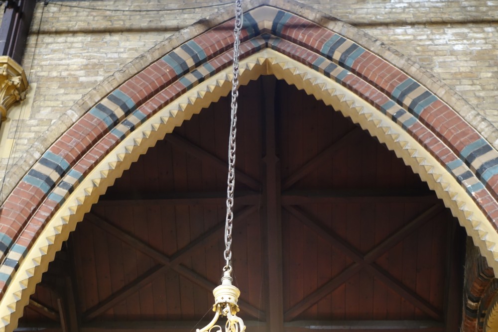 A huge low church building by Chester Cheston (1862-66) not far from Dalston Kingsland station. The interior is little altered and is a stunning example of the more evangelical end of Victorian church design. The tower, completed by E.L.Blackburne in 1877-80, uniquely features an outdoor barometer. At the crossing are two stained glass angel windows in the roof.