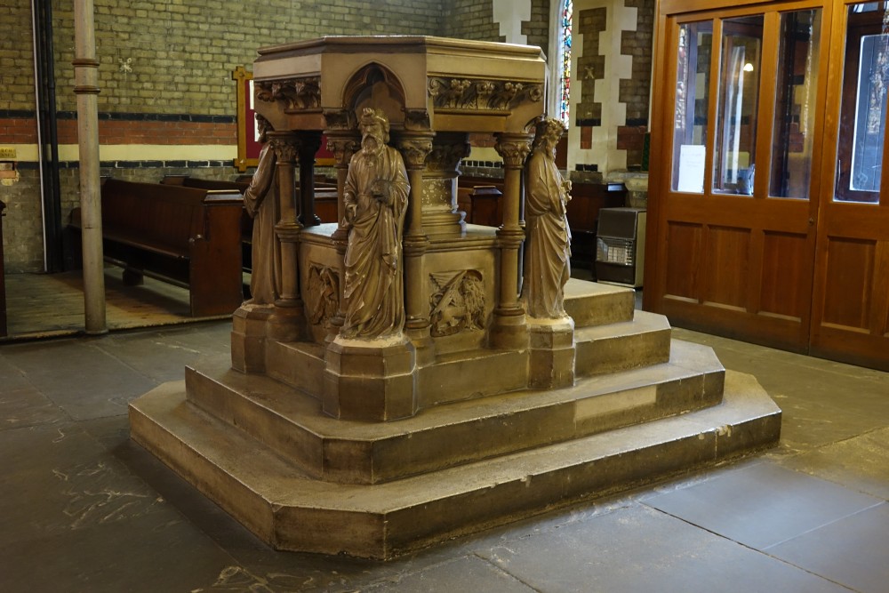 One of Charles Reilly’s few buildings – this church dates from 1909-11. The screen was added in 1935 to designs by Tyson Smith. It is part of an east end mission created by Merchant Taylor’s School and lies hidden behind the school house. Both have been brought back into use by an evangelical plant who have restored the school, the church is little changed.