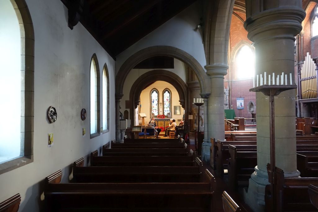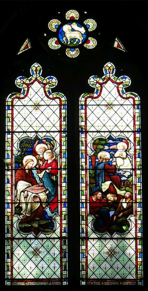 A late William Butterfield church of 1883. It sits on a hilltop above Enfield and near the Ridgeway. The chancel was decorated in 1897 with designs by Nathaniel Westlake and Charles Buckeridge. It was restored in 2012 and presents a great contrast with the rather plain nave. Much of the stained glass was designed by Butterfield and made by Heaton, Butler and Bayne.