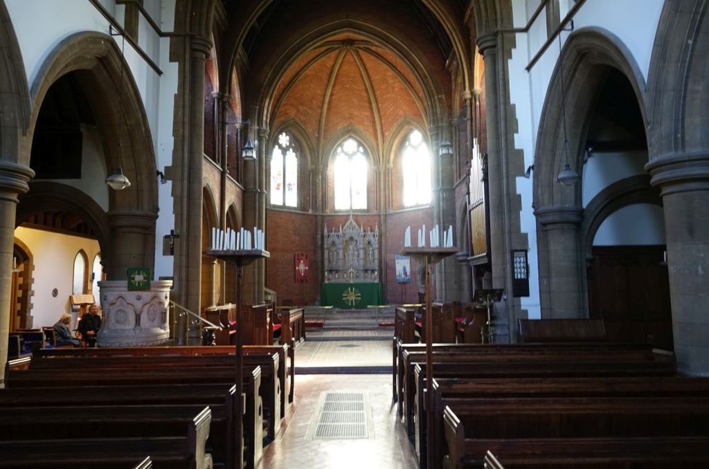 Just south of the town centre a basilica style church of 1958 by J.E. Sterrett and B.D. Kaye.