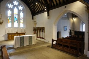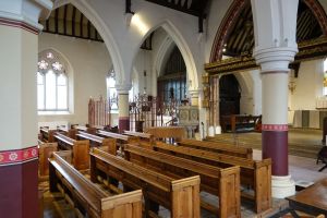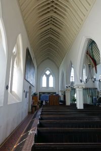 South of the town centre, this is a church designed by Benjamin Ferrey in 1857 and extended several times. Inside the west end of the nave has been stepped and filled with tiered seating. The chancel is screened off as a hall area and the east end of the south aisle is now a lounge area. There are several Ninian Comper windows.