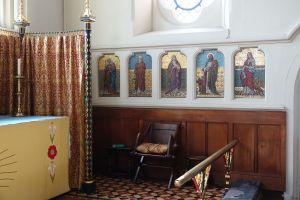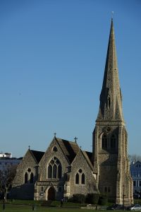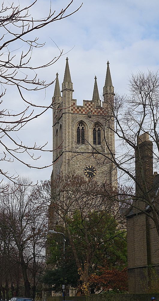 A landmark on Blackheath as it is surrounded on all sides by the heath with no separation at all. It was designed by Benjamin Ferrey and built 1857-1867. The porch and vestries were added in 1890 and 1899 by A.W. Blomfield. Many windows were blown out in WW2 leaving a light interior. The screen is a WW1 memorial.