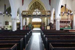 Set in a spacious churchyard in the old village. It is a 15th century church, enlarged several times in the 19th century. Benjamin Ferrey rebuilt the chancel in 1849 and Bodley and Garner lengthened it in 1896, adding the organ case and reredos. The south aisle is also by Ferrey and the spire was rebuilt taller in 1857 by Wollaston.