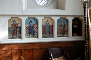 Part way up the hill from Tooting Bec towards Wandsworth Common. The church is by Anthony Salvin from 1854-55. The tower and north transept were added by Benjamin Ferrey in 1860. He widened the north aisle in 1889. The south aisle that had been widened in 1893 is now divided off as a hall. The wall paintings of 1906-13 by Richard Castle are awaiting restoration.